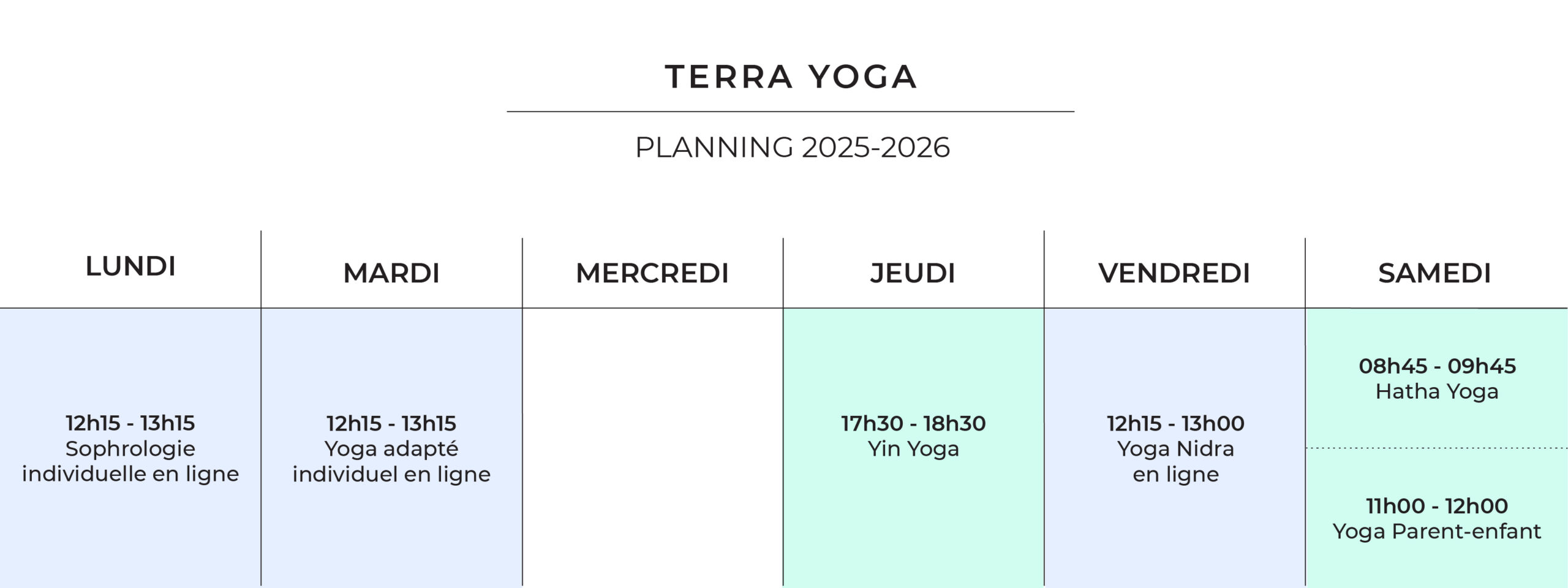 Yoga : arrivée 5 minutes avant le début du cours pour un échange rapide sur votre état du jour et signaler d’éventuelles gênes. Les séances incluent postures, respiration, visualisation et moments de détente. Aucune performance n’est exigée : la pratique se fait dans l’écoute de soi et la bienveillance. Pour les nouveaux inscrits, un temps d’échange est prévu autour de la pratique et de la respiration.